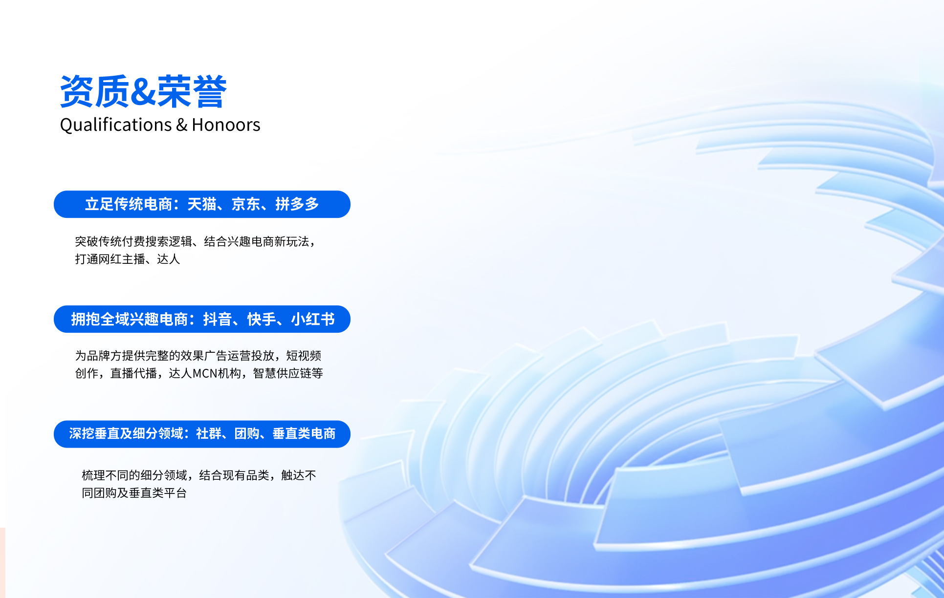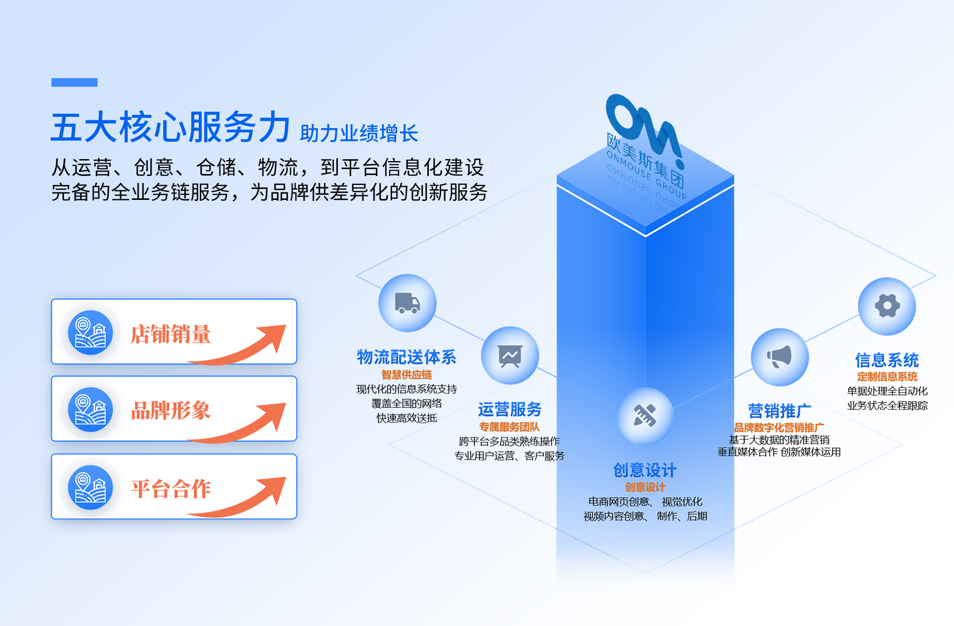 从品牌/平台营销、MCN红人直播、IP合作操盘、创意内容营销、达人分销、精准广告投放、CRM管理、售前售后服务、仓储物流等全链路为品牌提供线上服务,帮助品牌方提升知名度与市场份额,助力品牌构建以粉丝为中心的精准营销生态,为消费者打造无与伦比的购物体验,构架起品牌与消费者之间的价值桥梁。